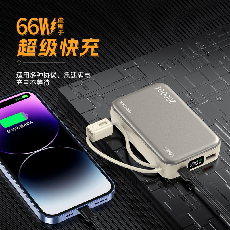 大容量自带双线20000毫安快充移动电源